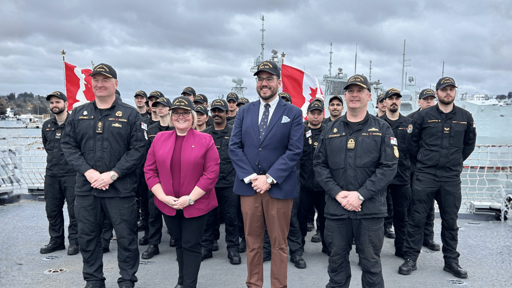Archana Cini, Lookout Newspaper; with files from the Government of Canada Minister of Veterans Affair Jill McKnight visited CFB Esquimalt following Canada reaching NATO’s 2% defence spending target. Major ongoing and upcoming investments include jetty replacement, military housing expansion, and improved CAF compensation and benefits. Funding will continue to support long-term fleet readiness, modernization, and operations across the Pacific region. - For those serving on the West Coast, the future of defence is already under construction. On April 1, the Honourable Jill McKnight, Minister of Veterans Affairs and Associate Minister of National Defence, visited Canadian Forces Base (CFB) Esquimalt to deliver remarks on the flight deck of His Majesty’s Canadian Ship (HMCS) Calgary. Joined by Victoria Member of Parliament Will Greaves and Rear-Admiral (RAdm) David Patchell, Commander of Maritime Forces Pacific/Joint Task Force Pacific (MARPAC/JTFP), McKnight spoke to Defence team members and media representatives gathered at B Jetty. The visit followed Prime Minister Mark Carney’s announcement that Canada has now reached NATO’s two per cent defence spending target in the 2025-26 fiscal year, marking a significant milestone in Canada’s approach to national defence and collective security. For the Defence community of Vancouver Island, the announcement carries direct and visible implications. As such, McKnight’s visit turned this nationwide milestone into a clear explanation on how this national investment will be felt locally — through infrastructure; Defence personnel and community support; and operational readiness. “Here on the west coast, readiness is essential,” said McKnight. “As such, following Prime Minister Mark Carney’s historic announcement, we’re making targeted investments in personnel. This includes key capabilities and infrastructure that underpin operations in the Pacific.” One of the most significant local investments is the $1.1 billion investment to replace the aging A and B jetties at CFB Esquimalt, supporting Royal Canadian Navy (RCN) operations and future fleet requirements. With B Jetty commissioned in early 2025 and now fully...
