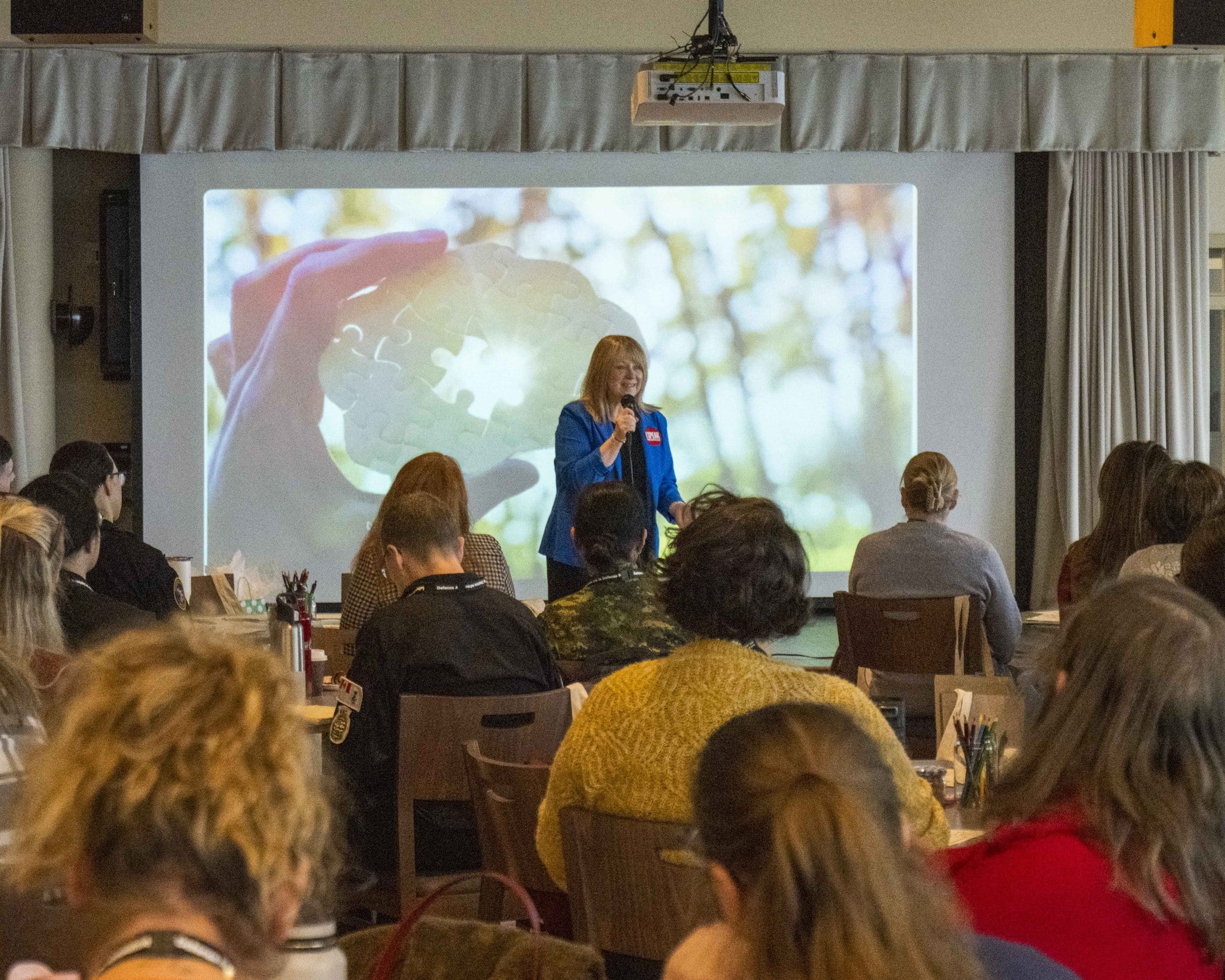 The event was filled with attendees from diverse age groups and backgrounds, highlighting that menopause continues to be a topic that resonates beyond the demographic of middle-aged women. Captain(Navy) Mike Stefanson, Champion for the Defence Women’s Advisory Organization (DWAO), opened the event, reminding audiences that mental, physical, and spiritual health are all key to operational success.